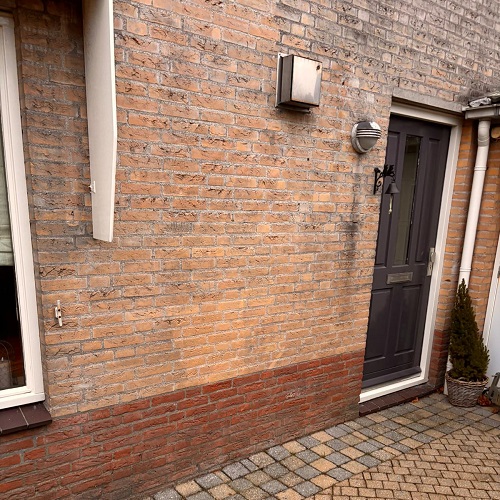 Vooraf is de gevel zorgvuldig geïnspecteerd om de juiste reinigingsmethode te bepalen. Vervolgens is de gevel gereinigd met warm water en een gepaste druk. Deze aanpak verwijdert effectief vuil aanslag en atmosferische vervuiling zonder het gevelmateriaal aan te tasten. Waar nodig is handbewassing toegepast om extra precisie en controle te garanderen. Door deze combinatie ontstaat een schoon en egaal resultaat.