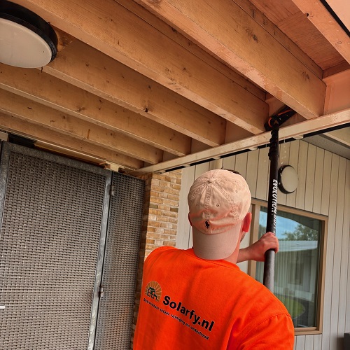 In oktober 2025 heeft Solarfy B.V. werkzaamheden uitgevoerd rondom een zorginstelling in Castrium, gericht op het reinigen van dakbeplating, zonnepanelen en beschimmeld houtwerk. Vanwege de hoogte en complexiteit van de werkzaamheden is veilig werken prioriteit nummer één geweest; daarom is er volledig gebruikgemaakt van gecertificeerde veiligheidsharnassen.