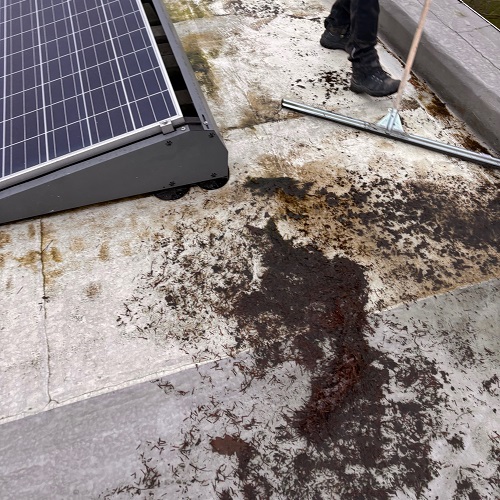 Tijdens dit project hebben wij het dak professioneel gereinigd met oog voor zowel het oppervlak als de coatinglaag. Hierbij is gekozen voor een methode die het dak grondig schoonmaakt zonder de coating aan te tasten. Door gecontroleerde handbewassing konden wij nauwkeurig werken en vervuiling effectief verwijderen. Dit komt de levensduur van de coating en de prestaties van de zonnepanelen ten goede.
