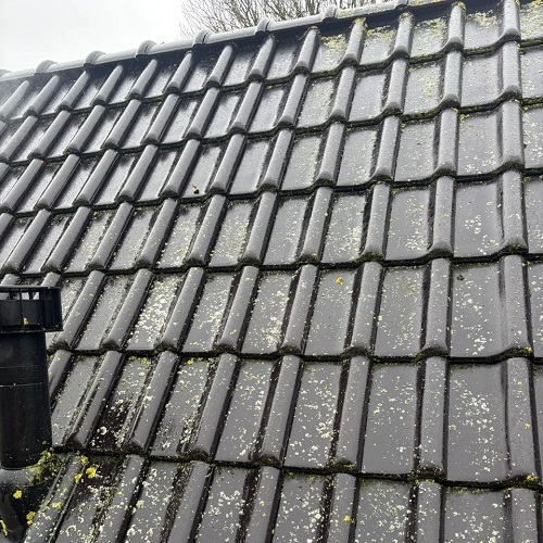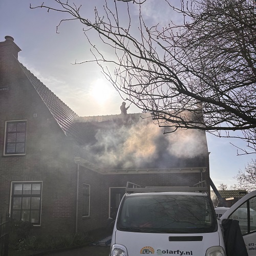 Omdat er werkzaamheden op het dak plaatsvonden, hebben de Solarfy’ers gewerkt met de juiste veiligheidsmaatregelen, waaronder een veiligheidsharnas en een dakladder. Hierdoor konden de dakpannen veilig en gecontroleerd worden gereinigd.