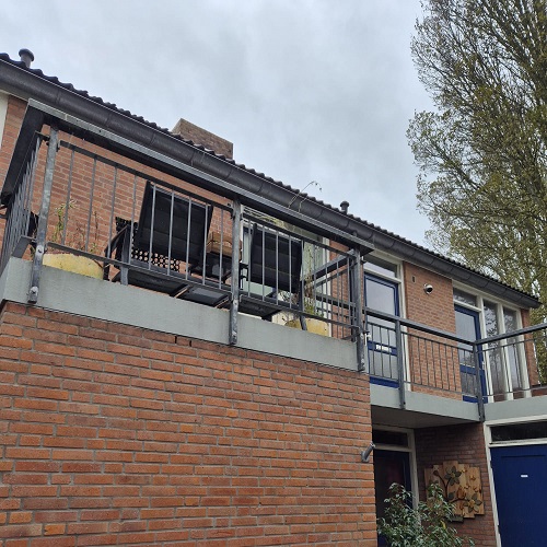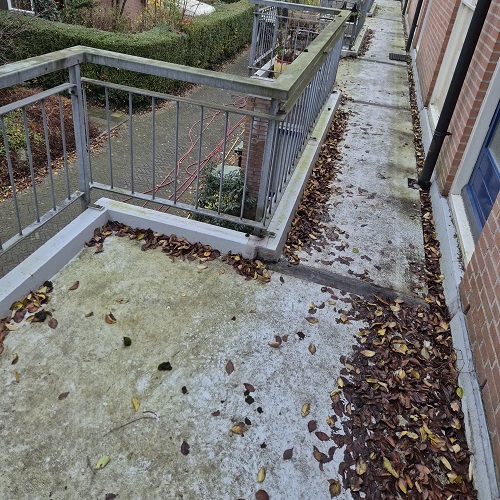 Bij het reinigen maakten we gebruik van een combinatie van osmosebewassing en handmatige reiniging. Osmosewater zorgt voor een streeploos resultaat en is een duurzame methode zonder chemische toevoegingen. Handbewassing biedt extra controle bij onderdelen waar precisie gewenst is, zoals hekwerk en galerijdetails. Dit zorgt voor een gelijkmatig en verzorgd eindbeeld.