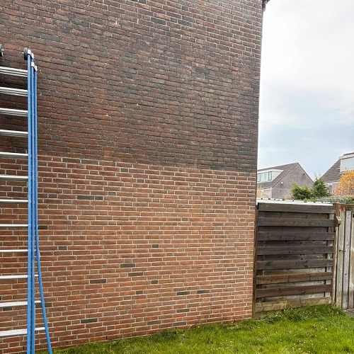 De kopgevels zijn met een passende reinigingsmethode behandeld, waarbij er gebruik is gemaakt van stoomreiniging zodat gevoelige delen van de gevels zorgvuldig konden worden gereinigd. De dakgootconstructies zijn volledig vrijgemaakt van vuil, bladresten en aanslag, zodat de waterafvoer weer optimaal functioneert.