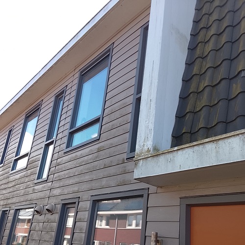In Vroonermeer Oudorp heeft Solarfy een complete reinigingsbeurt uitgevoerd aan diverse onderdelen van de woning en bergingen. Het betreft het reinigen van kunststof ramen, deuren en kozijnen, evenals de goten en de Eternit gevelbekleding aan de noordgevel en bij de bergingen. De gevelbekleding van de woningen zelf verkeerde nog in nette staat, waarbij alleen plaatselijk lichte aanslag van alg of mos is meegenomen waar nodig.