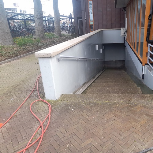 Bij station Heiloo in Noord-Holland heeft Solarfy recent diverse reinigingswerkzaamheden uitgevoerd rondom de buitenruimte. Het betrof het reinigen van afdekbanden, keerwanden, bestrating en een trapgedeelte. Deze elementen zijn intensief gebruikt en daardoor vervuild geraakt door weersinvloeden, algenvorming en dagelijks verkeer.